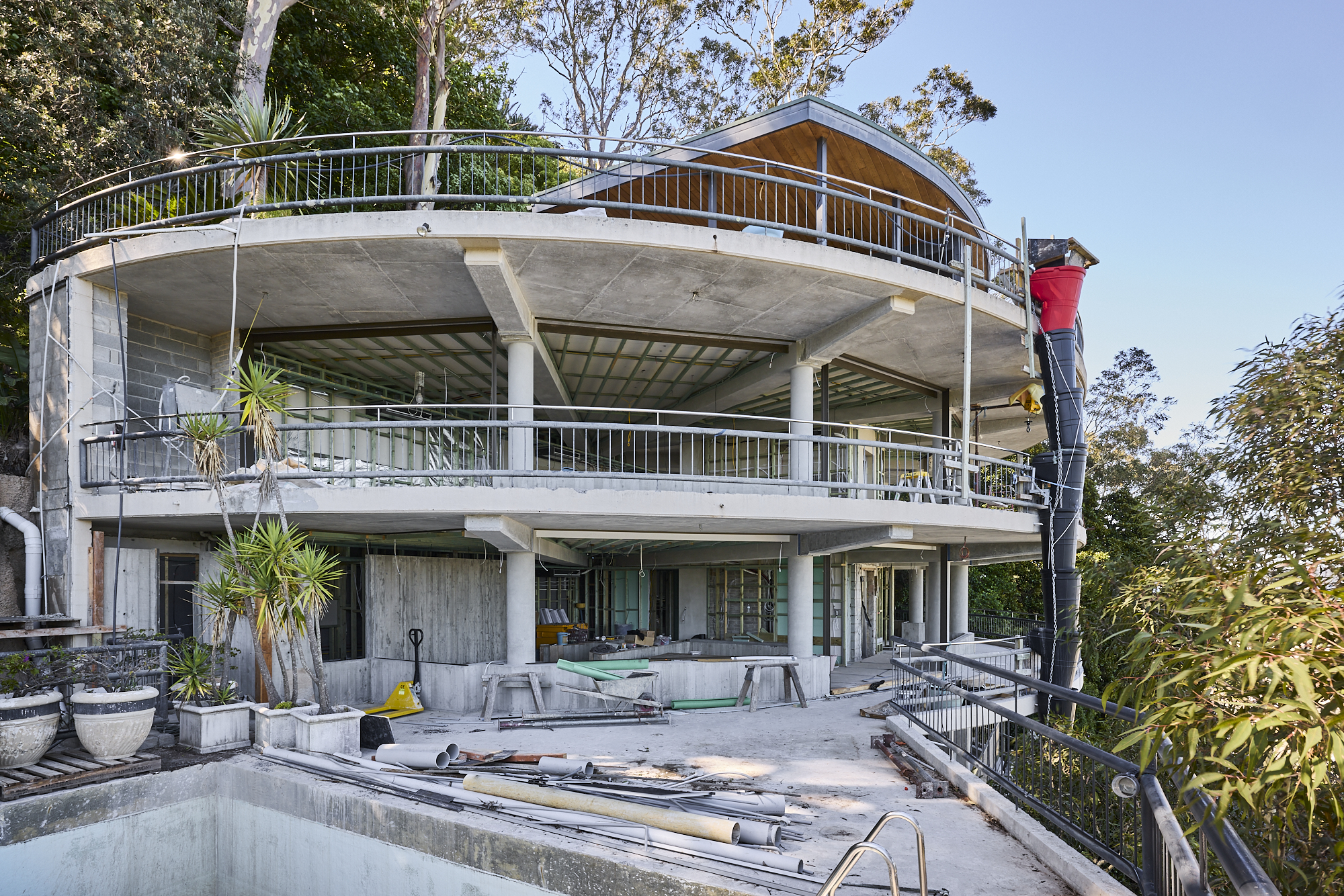 Perched dramatically on a high cliff above Palm Beach, this major refurbishment honours the original 1970s circular icon while bringing it confidently into the modern age. The brief was clear: do justice to the house’s bold form and legacy, update it for contemporary family life. Robust concrete anchors it, warmer timber and expansive glazing open it to endless Pittwater views. A true landmark, done better.