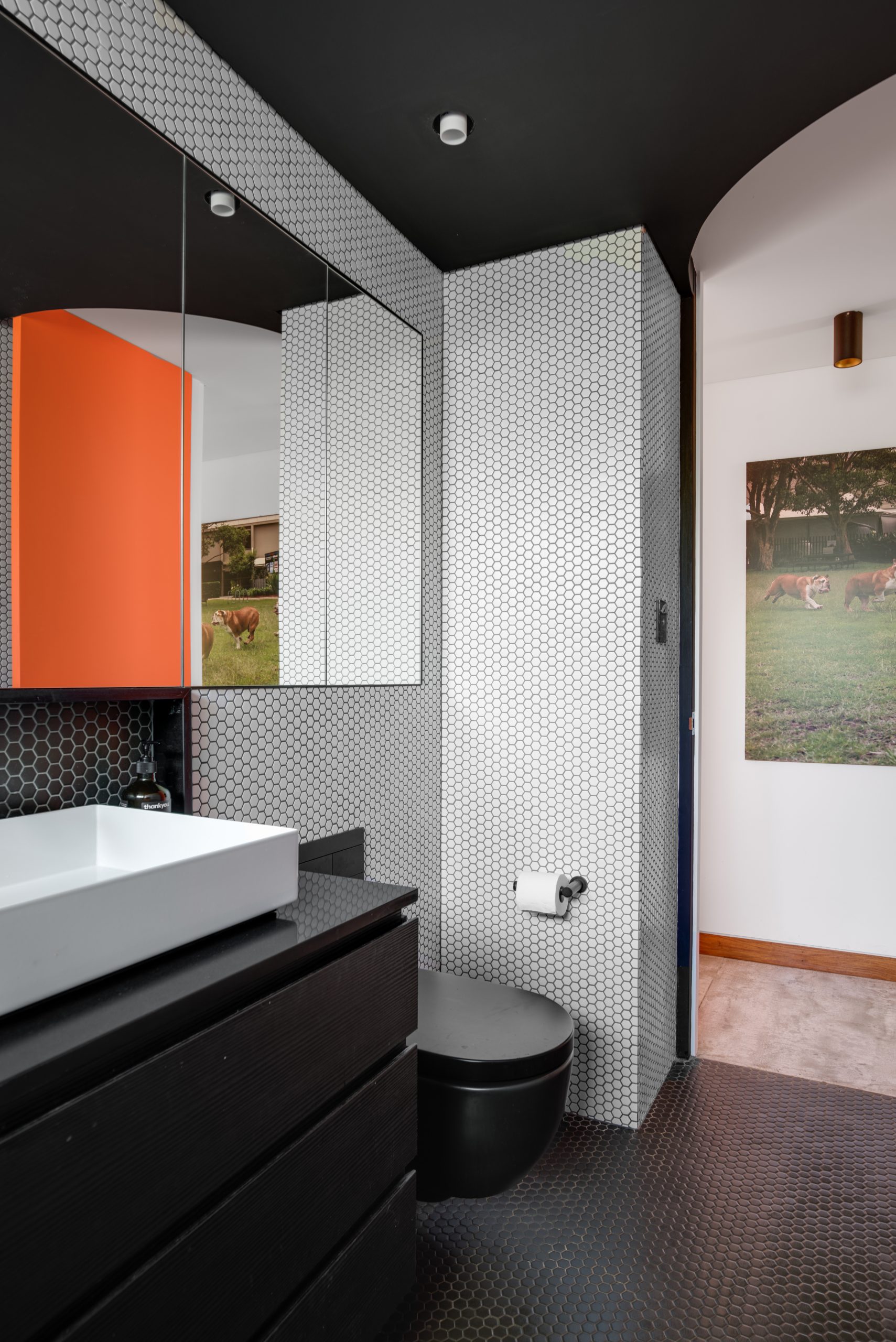 This modestly sized apartment packs real character with its dark, moody base contrasted with confident colour pops that make every room feel intentional.